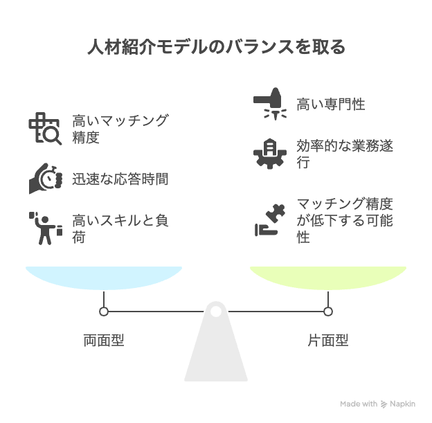 これは、企業側と求職者側の両方を1人のコンサルタントが担当するスタイルで、