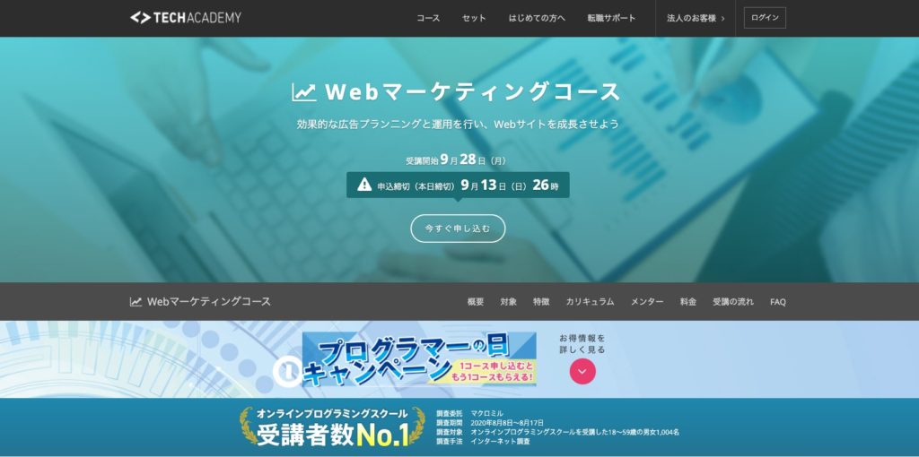 TechAcademyは良いスクールですWebマーケティングコースを