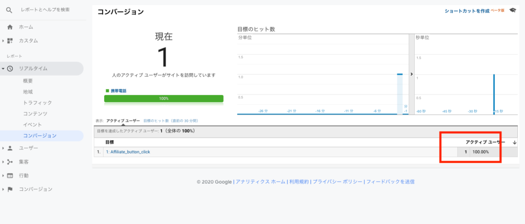 実際にスマートフォンでサイトにアクセスしてみてアフィリエイトリンクをクリックし、コンバージョンが1になればOK。