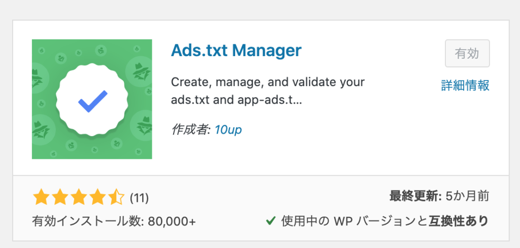 プラグイン「Ads.txt Manager」をインストールし、プラグインを有効にする。