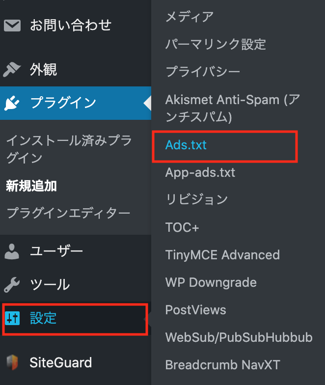 wordpressダッシュボードの設定 > Ads.txt へと進み