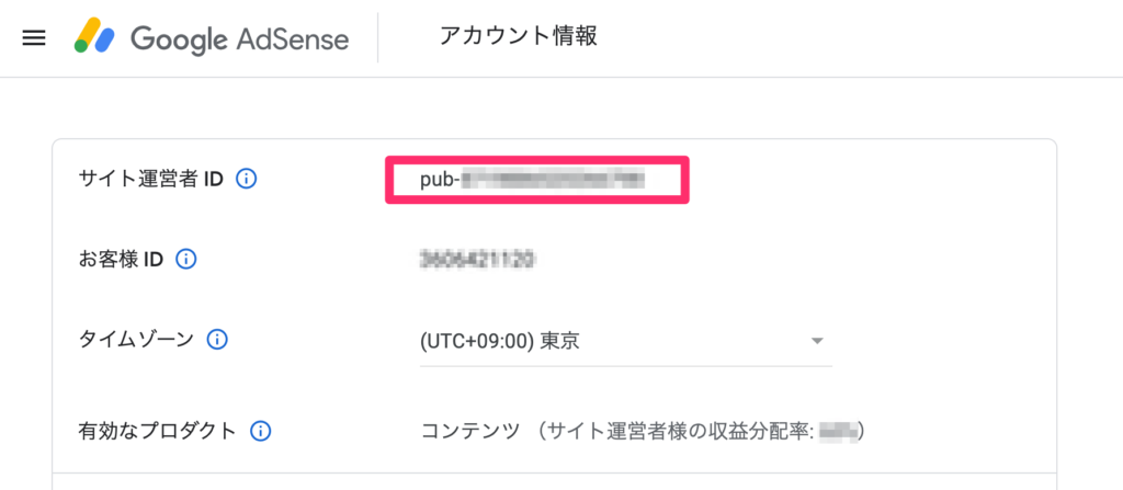 GoogleAdSenseサイト>アカウント情報