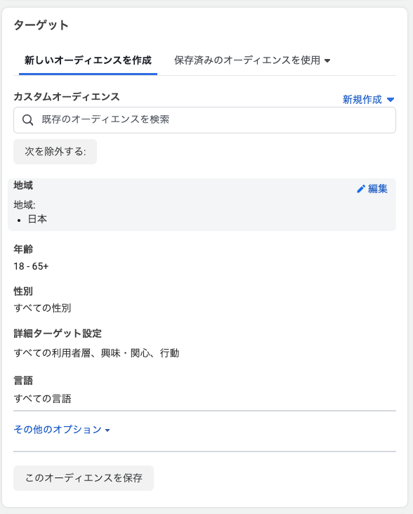 広告セットでは主にターゲティングを考えていきます。