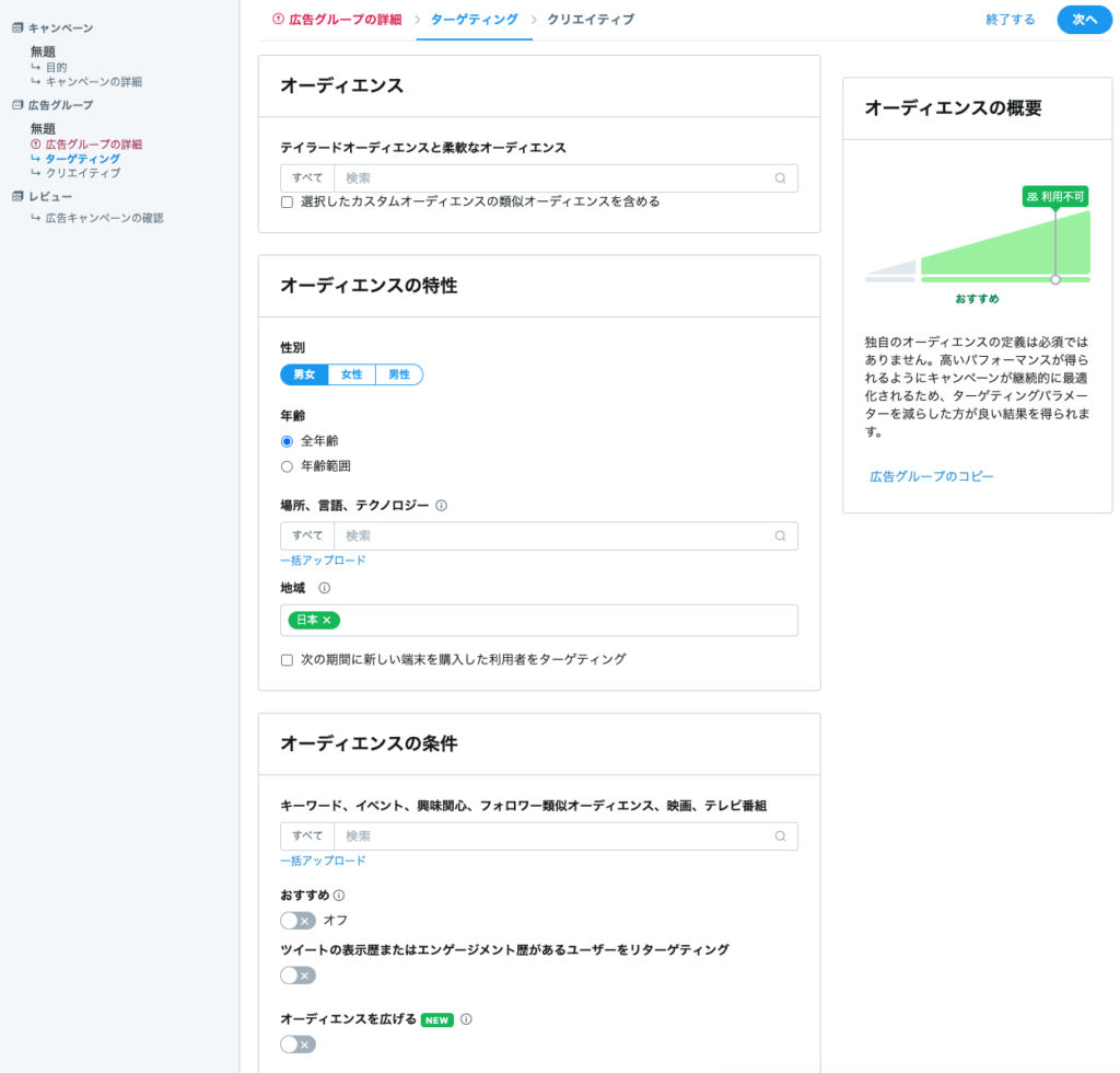 Twitterのターゲティングは以前まとめてあるのでこちらを参照してもらえればと! X(旧Twitter)はリアルタイムにいま世界で起こっていることや話題になっていることを知ったり、情報をすぐに共有したりと、世界中の人とつながりを持てる便利なツールです! 現在月間アクティブユーザーは ... 続きを見る